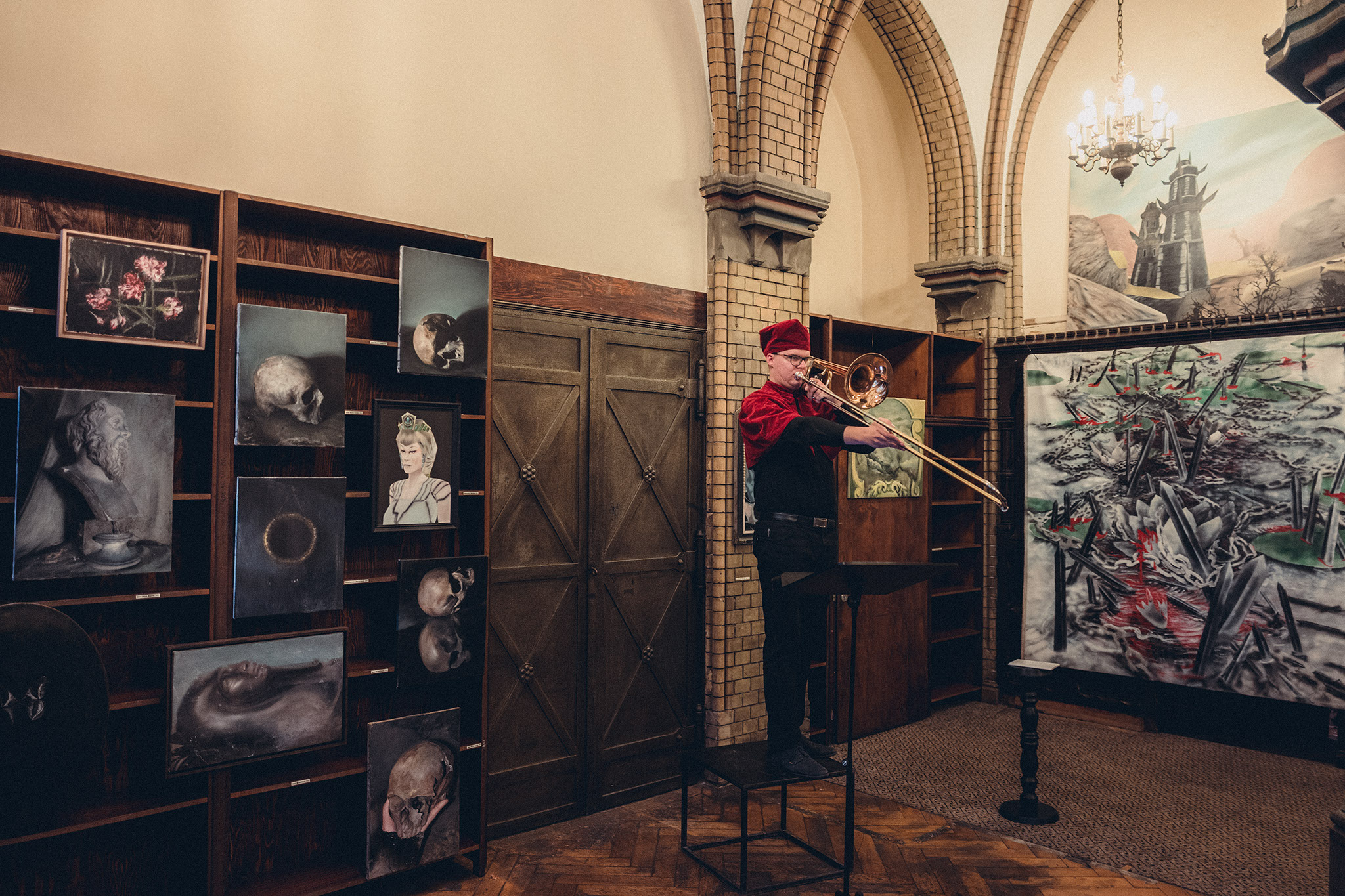 Tytuł wystawy ,,Dark Academia” odwołuje się do terminu określającego subkulturowy nurt estetyczny, czerpiący inspiracje z akademickiego życia, zwłaszcza tego związanego z elitarnymi uczelniami, literaturą klasyczną, filozofią, sztuką oraz historią. Charakteryzuje się fascynacją mrocznymi, gotyckimi motywami, atmosferą tajemnicy, oraz dekadenckim stylem życia. Pod jego hasłem zaprezentowaliśmy szeroki zestaw prac opowiadających o świeckiej duchowości. Wystawie towarzyszył koncert Maćka Michaluka oraz działania performatywne w reżyserii Marty Bratuś