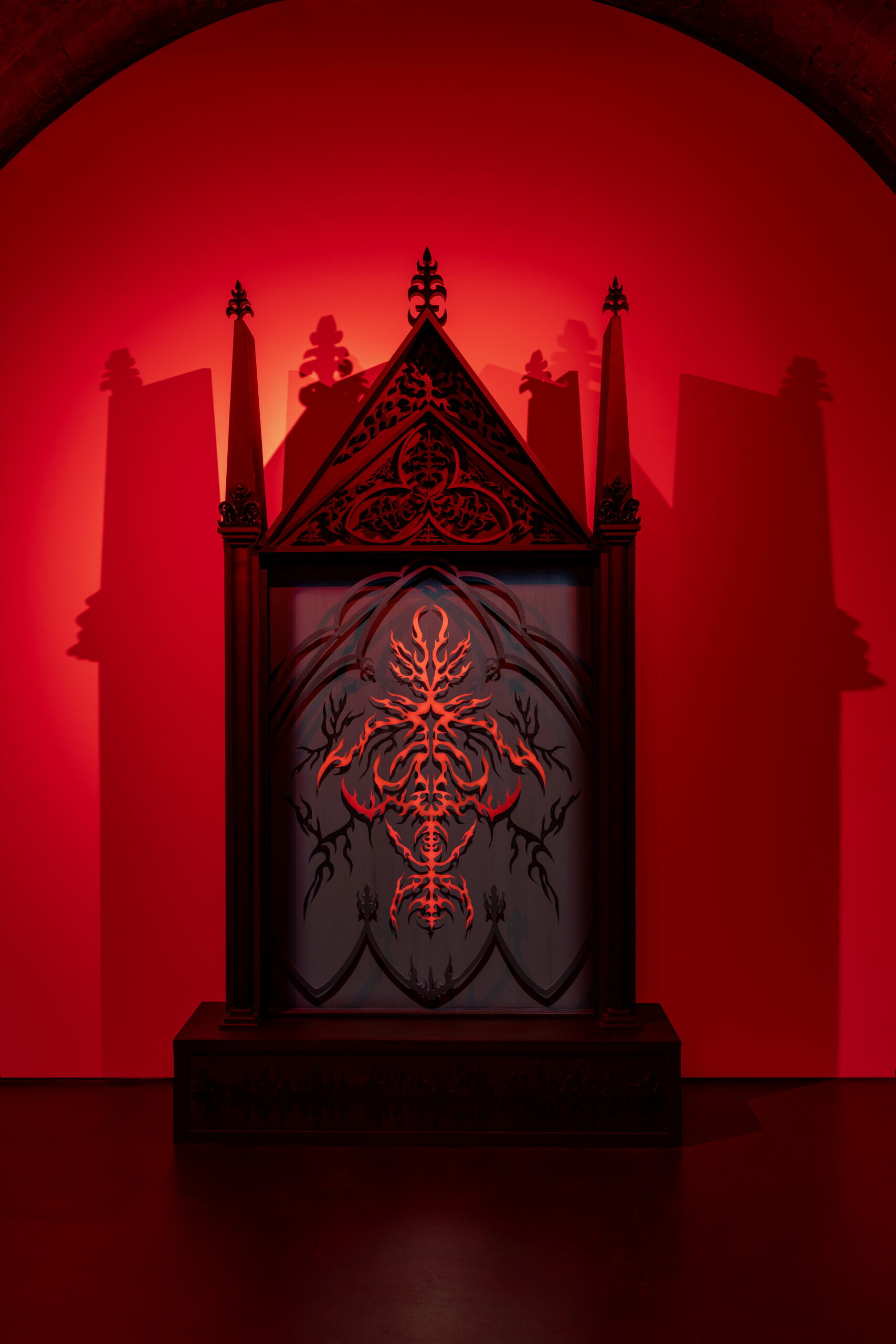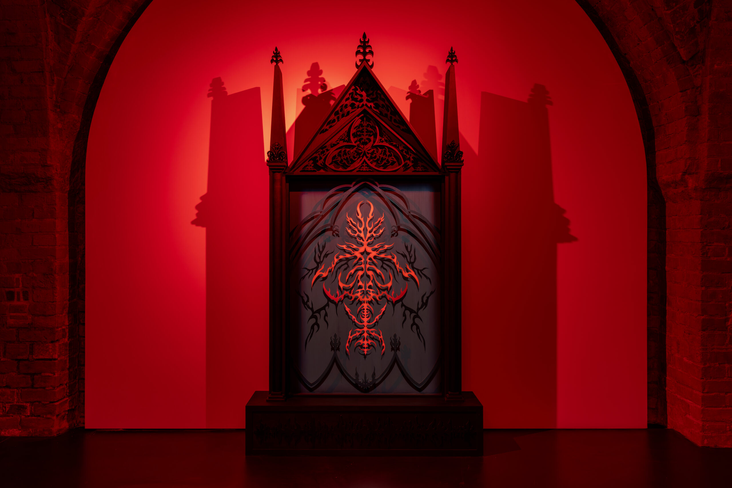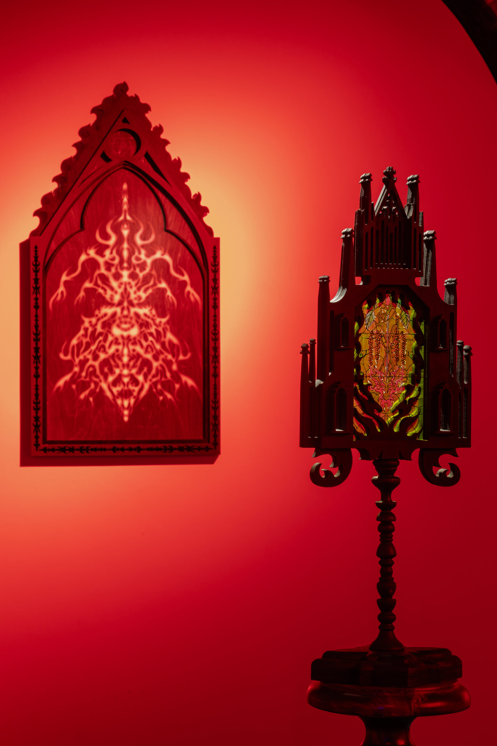 W dobie późnego średniowiecza monstrancje przybierały formę wieżowej kapliczki będącej swego rodzaju świątynią lub miniaturowym ołtarzem, w baroku natomiast rozpowszechniła się popularna do dziś forma solaryczna – w kształcie promienistej glorii. Ornamenty i detale architektury sakralnej są bliskie praktyce Justyny Baśnik, jednak formy gotyckie w jej malarskich obiektach funkcjonują jedynie jako oprawa do wyimaginowanej współczesnej symboliki opartej na abstrakcyjnych formach. Kontynuując jednak nawiązanie do natury, tak jak monstrancje nowożytne przyjmują formę słońca, tak witraż w monstrancji artystki zawiera w sobie ornamentykę roślinną, w postaci listków brzozy, która według naukowców jest jednym z drzew, które znikną z Polski przez postępujące zmiany klimatyczne. Tym sposobem artystka świadomie wykorzystuje gloryfikowane przez wiarę katolicką naczynie liturgiczne, by uwypuklić ciągle bagatelizowany problem.”