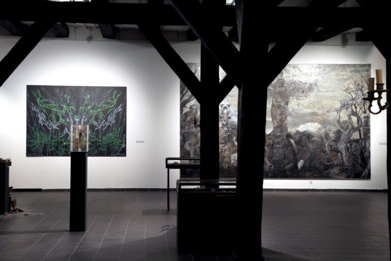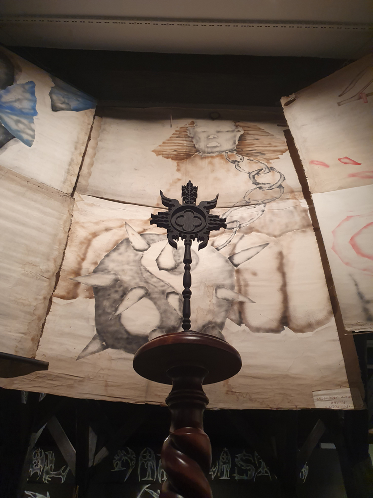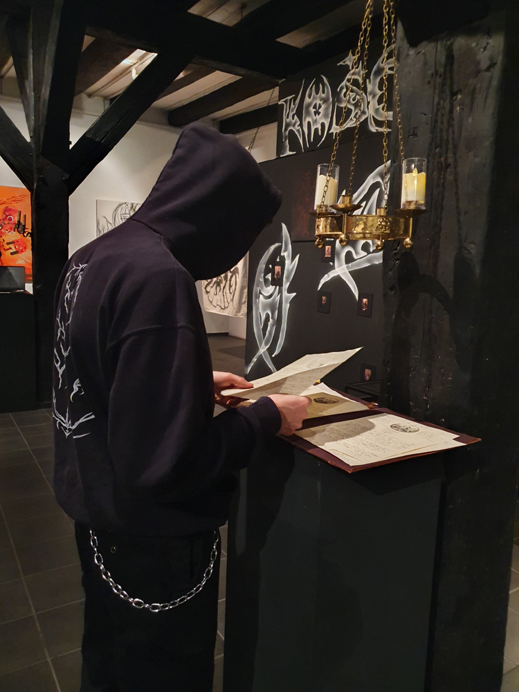 Kiedy narodził się Kościół Nihilistów? Wydawać by się mogło, że artystyczna formacja założona przez Justynę Baśnik, Pawła Baśnika i Jędrzeja Sierpińskiego oraz nieco później dokooptowaną Nikitę Krzyżanowską powstała w 2019 roku. Nic bardziej mylnego. Kościół Nihilistów zawiązał się wieki temu, w czasach, kiedy antyk krzyżował się z katakumbowym okresem starochrześcijańskiej myśli. Przez stulecia objawiał się w pogańskich rytach, poruszał na marginesach społecznych, a także inspirował wolnomyślicieli, filozofów i artystów. Świadczą o tym liczne ślady, które zachowały się w formie przekazów, manuskryptów, rycin, artefaktów czy późniejszych obiektów już z „doby reprodukcji technicznej”. Ta parareligijna społeczność trwała niczym ciemna materia sztuki.